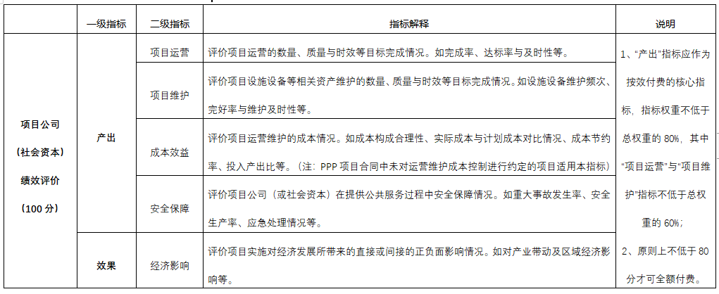 PPP項目運營期績效評價共性指標(biāo)框架(參考)