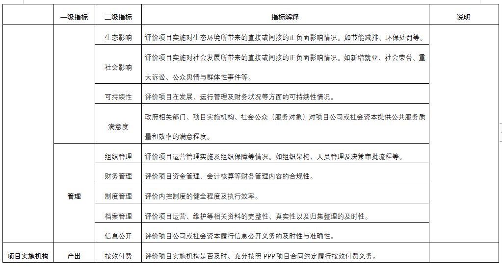 PPP項目績效評價共性指標(biāo)框架(參考)——運營期