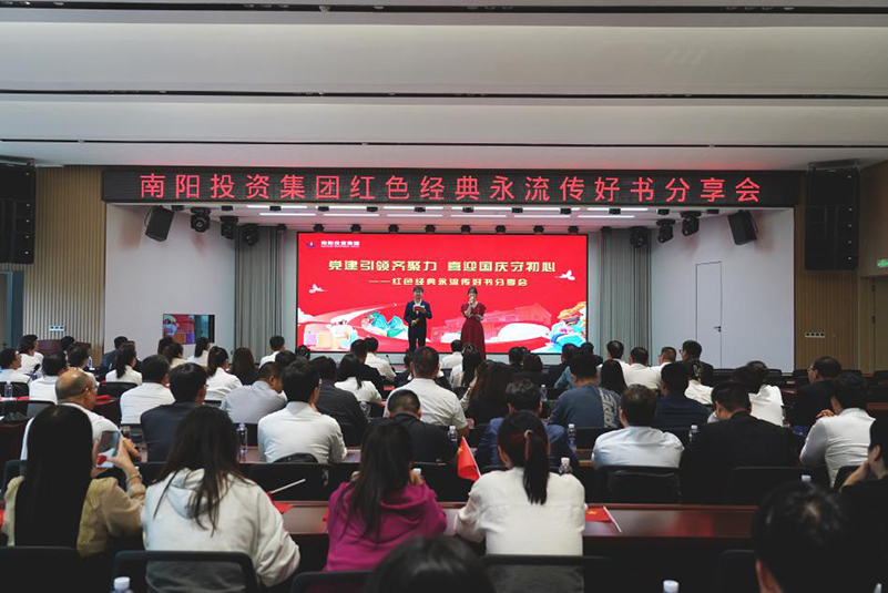 國慶將至,中秋同來。為深入學(xué)習(xí)貫徹習(xí)近平新時(shí)代中國特色社會(huì)主義思想,進(jìn)一步錘煉黨員干部的工作作風(fēng),激發(fā)黨員干部干事創(chuàng)業(yè)的激情和斗志,9月27日,南陽投資集團(tuán)組織開展“黨建引領(lǐng)齊聚力喜迎國慶守初心”讀書分享會(huì)主題活動(dòng),重溫歷史崢嶸歲月,賡續(xù)紅色血脈。南陽投資集團(tuán)黨委委員、紀(jì)委書記韓玉奇出席活動(dòng)并講話,集團(tuán)各基層黨支部全體黨員、各黨建點(diǎn)代表人員、各部室及子公司讀書愛好者參加活動(dòng)。