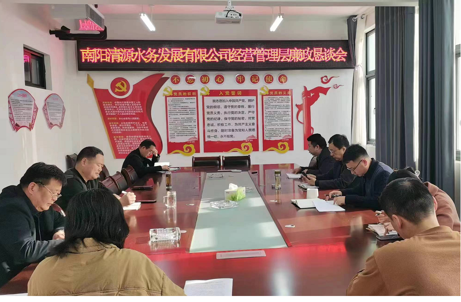 3月29日上午,集團(tuán)黨委委員、副總經(jīng)理、清源公司董事長(zhǎng)崔天杰組織南陽(yáng)清源水務(wù)發(fā)展有限公司經(jīng)營(yíng)管理層召開(kāi)廉潔教育懇談會(huì)。