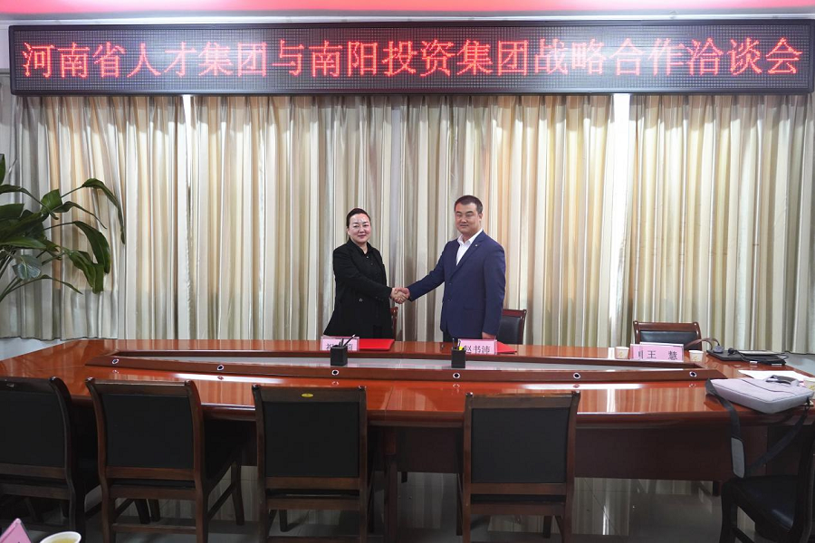 隨后,河南省人才集團(tuán)副總經(jīng)理祝莉、南陽投資集團(tuán)人力資源總監(jiān)趙書沛代表雙方簽訂戰(zhàn)略合作協(xié)議,與會(huì)領(lǐng)導(dǎo)見簽。