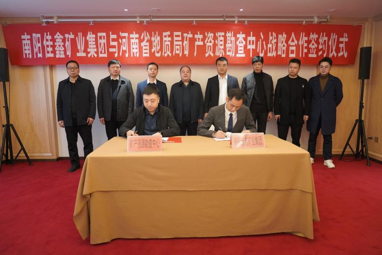 南陽佳鑫礦業(yè)集團(tuán)總經(jīng)理呂秉鈐、河南省地質(zhì)局礦產(chǎn)資源勘查中心副主任趙修軍代表雙方簽約。根據(jù)協(xié)議內(nèi)容,雙方將在南陽市礦產(chǎn)資源勘察與開發(fā)、測(cè)繪、遙感、生態(tài)修復(fù)等領(lǐng)域開展全面合作。
