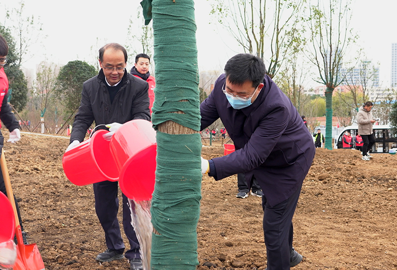 張志強(qiáng)強(qiáng)調(diào),著眼生態(tài)文明的千年大計(jì),造林綠化已遠(yuǎn)遠(yuǎn)不是一項(xiàng)單純的業(yè)務(wù)工作,而是與人類生存、生態(tài)文明息息相關(guān)的根基性工程。生態(tài)環(huán)境的好壞直接影響到人民生活的幸福程度和美好未來,植樹造林是恢復(fù)和保護(hù)生態(tài)環(huán)境的重要手段,是實(shí)現(xiàn)碳中和的關(guān)鍵舉措,是豐富凈化空氣、固定氣候、保護(hù)水源的強(qiáng)力抓手。我們要以再出發(fā)、再攻堅(jiān)的心態(tài),為建設(shè)現(xiàn)代化省域副中心城市厚植綠色優(yōu)勢(shì)、做強(qiáng)生態(tài)支撐,共同繪就綠水青山變金山銀山的南陽底色。