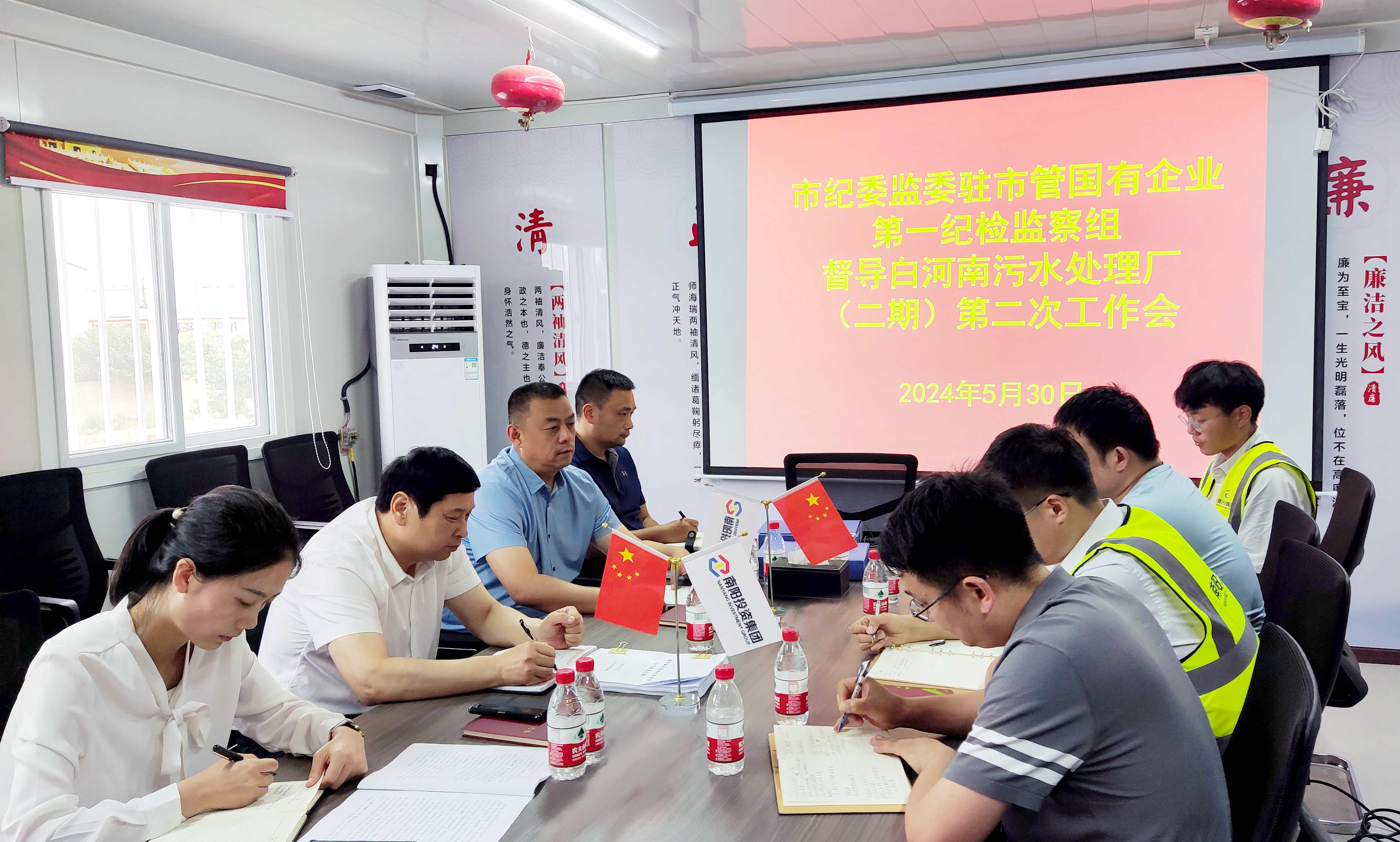 5月30日,市紀(jì)委監(jiān)委駐市管國(guó)有企業(yè)第一紀(jì)檢監(jiān)察組組長(zhǎng)馬馳、副組長(zhǎng)于智博一行前往白河南污水處理廠(二期)項(xiàng)目調(diào)研清廉工程創(chuàng)建工作,集團(tuán)黨委副書(shū)記、監(jiān)事會(huì)主席韓玉奇陪同調(diào)研。