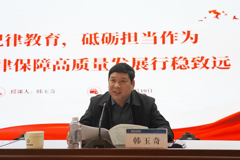 在隨后的書記講黨課環(huán)節(jié),韓玉奇以《深化紀(jì)律教育 砥礪擔(dān)當(dāng)作為 以嚴(yán)明紀(jì)律保障高質(zhì)量發(fā)展行穩(wěn)致遠(yuǎn)》為題,深入闡釋了加強(qiáng)紀(jì)律建設(shè)的重要意義,重點(diǎn)圍繞“六大紀(jì)律”,以實(shí)際案例為依托,剖析了反面典型案例的問(wèn)題、原因、危害和啟示教訓(xùn),并結(jié)合集團(tuán)經(jīng)營(yíng)發(fā)展實(shí)際,要求在項(xiàng)目建設(shè)、投融資活動(dòng)、財(cái)務(wù)審計(jì)、人才隊(duì)伍培育等關(guān)鍵環(huán)節(jié)做實(shí)紀(jì)律保障,把黨紀(jì)學(xué)習(xí)教育同中心工作和集團(tuán)發(fā)展聯(lián)系在一起,為營(yíng)造風(fēng)清氣正的政治生態(tài)和良好的工作環(huán)境而努力奮斗。