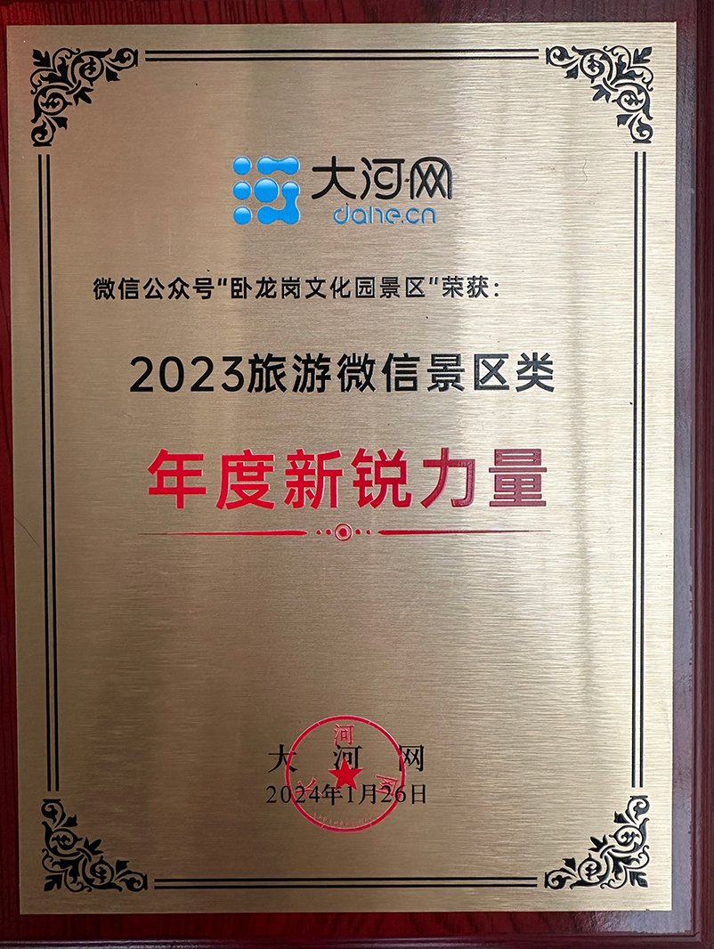 1月26日,由河南日報社·大河網(wǎng)、河南百度聯(lián)合舉辦的河南文旅數(shù)智生態(tài)峰會在河南鄭州召開,南陽城投三國城投資有限公司負(fù)責(zé)運營的臥龍崗文化園景區(qū)微信公眾號榮獲2023河南政務(wù)新媒體(微信類)年度榜單——景區(qū)類新銳力量獎。