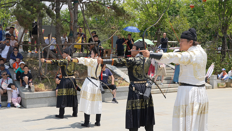 此次“端午奇妙游”活動(dòng)復(fù)原多種傳統(tǒng)端午習(xí)俗與節(jié)慶活動(dòng),不僅舉辦了“射五毒”、祭祀典禮等端午傳統(tǒng)活動(dòng),還為廣大游客準(zhǔn)備了佩香囊、點(diǎn)雄黃、戴五彩繩、艾水盥洗等經(jīng)典習(xí)俗體驗(yàn)項(xiàng)目。游客自覺(jué)有序排起長(zhǎng)隊(duì),進(jìn)行“驅(qū)害辟邪”的民俗祈愿,沉浸式體驗(yàn)古人過(guò)節(jié)的儀式感,展現(xiàn)了中國(guó)傳統(tǒng)端午節(jié)日所蘊(yùn)含的豐富文化內(nèi)涵。