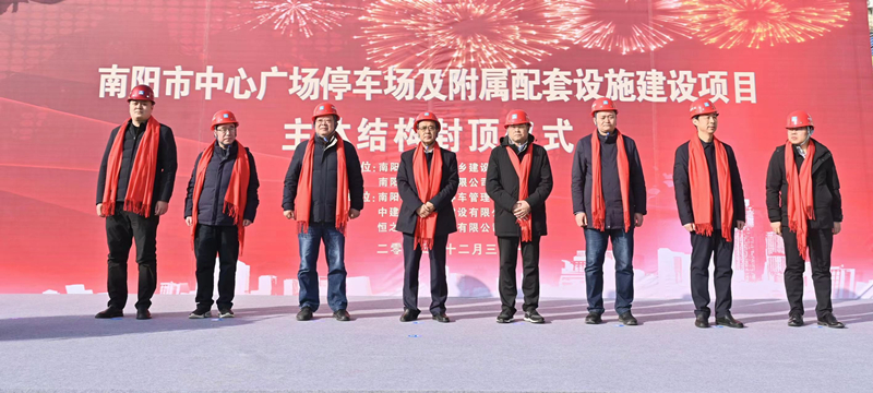 南陽(yáng)投資集團(tuán)黨委書記劉九利宣布南陽(yáng)市中心廣場(chǎng)停車場(chǎng)及附屬配套設(shè)施建設(shè)項(xiàng)目主體結(jié)構(gòu)封頂儀式正式啟動(dòng)。