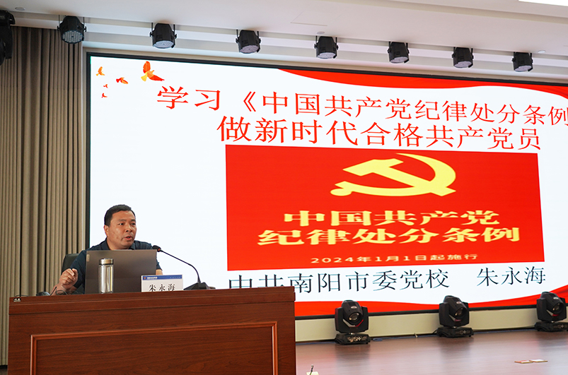 為深入學(xué)習(xí)貫徹習(xí)近平總書(shū)記關(guān)于黨紀(jì)學(xué)習(xí)教育的重要講話和重要指示批示精神,加強(qiáng)黨的紀(jì)律建設(shè),扎實(shí)推動(dòng)黨紀(jì)學(xué)習(xí)教育走深走實(shí)。5月28日,南陽(yáng)投資集團(tuán)舉辦黨紀(jì)學(xué)習(xí)教育專(zhuān)題培訓(xùn)會(huì),邀請(qǐng)市委黨校黨的建設(shè)教研室副主任朱永海作專(zhuān)題輔導(dǎo)。集團(tuán)黨委書(shū)記、董事長(zhǎng)余永海,市紀(jì)委監(jiān)委駐市管?chē)?guó)有企業(yè)第一紀(jì)檢監(jiān)察組組長(zhǎng)馬馳出席會(huì)議,集團(tuán)黨委副書(shū)記、監(jiān)事會(huì)主席韓玉奇主持會(huì)議。