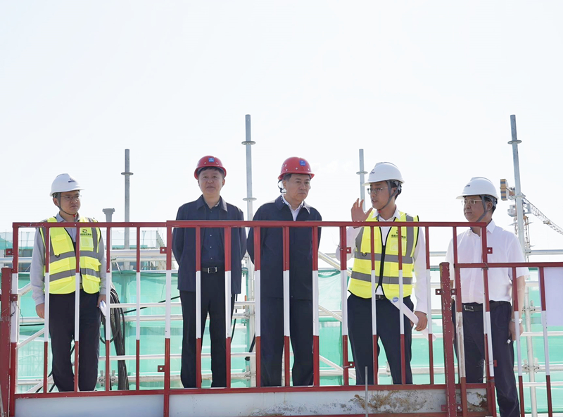 王智慧一行深入項目現(xiàn)場,實地查看了生物池、二沉池和加藥間等區(qū)域,認(rèn)真聽取了項目負(fù)責(zé)人關(guān)于項目建設(shè)背景、施工進度和運營規(guī)劃等方面的匯報,并不時詢問污水處理的流程工藝,當(dāng)前建設(shè)存在的困難,并提出指導(dǎo)性意見。