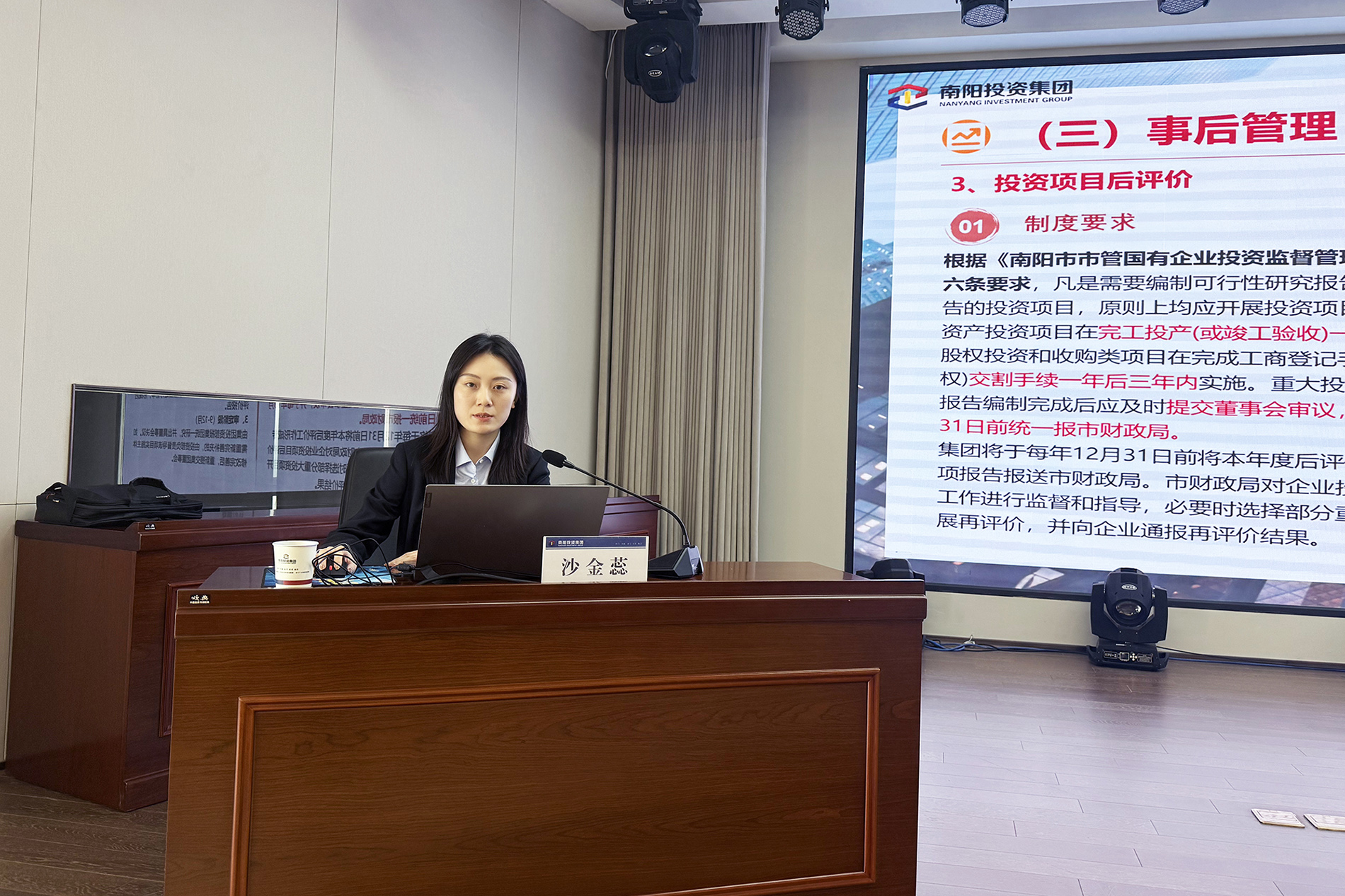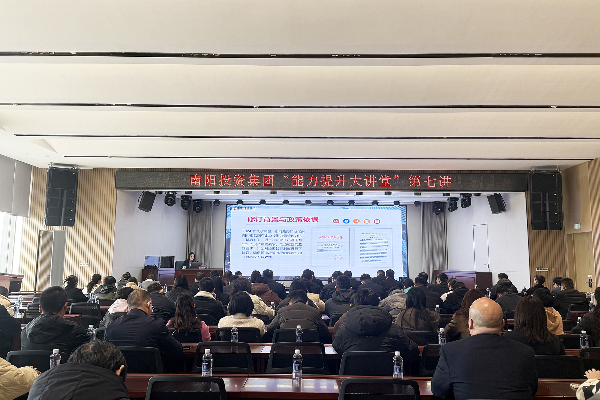 2月27日,南陽投資集團組織開展“能力提升大講堂”第七講投資管理專題培訓(xùn),本次培訓(xùn)聚焦集團投資管理制度體系,通過系統(tǒng)化解讀和實務(wù)指導(dǎo),著力提升投資決策規(guī)范化和風(fēng)險防控水平。集團中層干部、子公司負責(zé)人及相關(guān)業(yè)務(wù)骨干共計80余人參加。